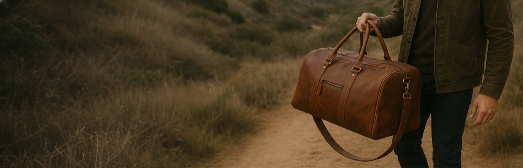 24 Inch Genuine Leather Duffle Bag for Men Travel Overnight Weekender Leather